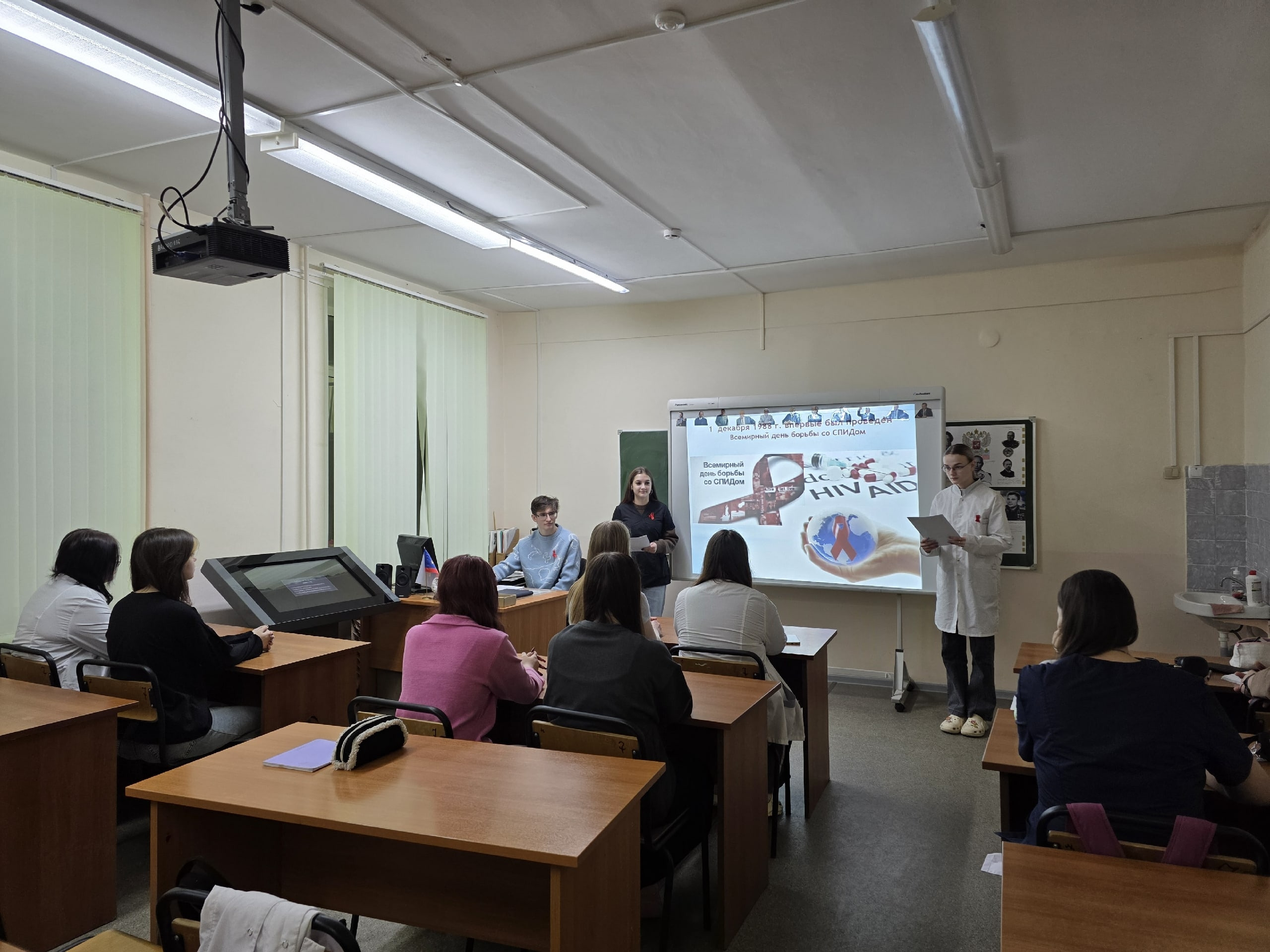 Студенты‑лекторы провели серию просветительских бесед для первокурсников на тему «Первичная профилактика ВИЧ/СПИД‑инфекции». Во время беседы: